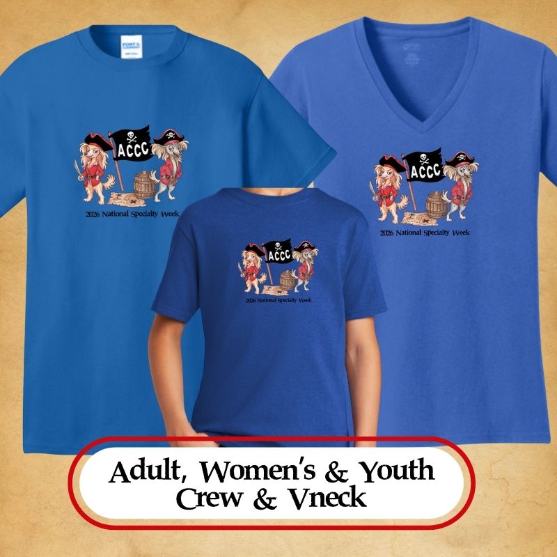 Every good pirate crew needs the right gear, and these 2026 Chinese Crested National Week shirts featuring the official National Logo are ready for every exhibitor, supporter, and junior handler aboard! With multiple styles and sizes available, there’s a perfect fit for every member of the Crested crew.